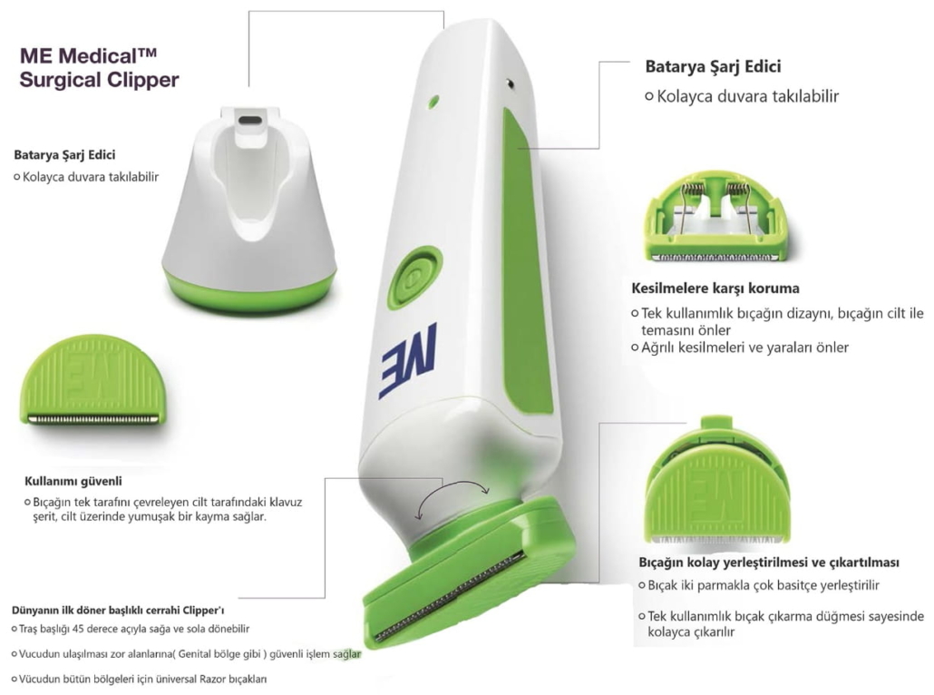 Me Medikal tıp uzmanları ile iş birliği içinde en iyi tıraş sonuçlarını,kolay kullanımla birleştirerek,mikro yaralanmaları, enfeksiyon ve cilt tahrişlerini en aza indirgeyen benzersiz bir cerrahi clipper geliştirdi.